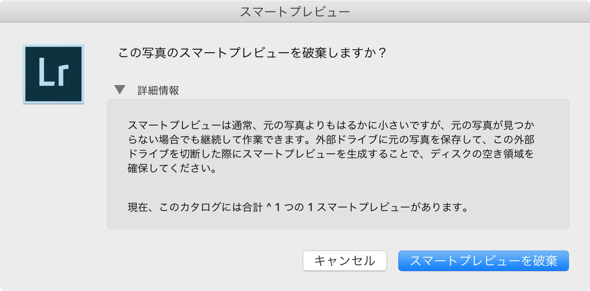 特定の写真に対してスマートプレビューを生成する方法は、検索してみましたが見当たりませんでした。自力で見つけたものの、わかりづらかったので備忘録として。